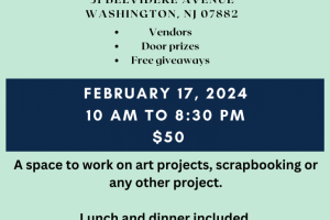 Come for a day to work on scrapbooks, art projects and any other artwork that needs space. $50 for the day and includes lunch and dinner, door prizes, free giveaways and vendors.