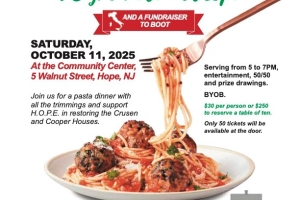 Help Our Preservation Effort (H.O.P.E.) is restoring two historic homes in the center of the Moravian Historic District of Hope, NJ, and the first fundraiser to support this effort is a pasta dinner at the Hope Community Center.