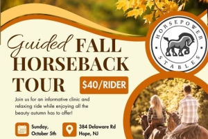 An informative clinic followed by a relaxing ride to enjoy all the beauty autumn has to offer! Registration required; contact HorsepowerStablesNJ@gmail.com or 908-914-1998.