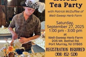 Join Patrick McDuffee of Well-Sweep Herb Farm for a delicious afternoon herbal tea party. Patrick will teach you the multitude of factors that go into the perfect cup. Come learn about a wide selection of exotic flavors and their benefits and lore.