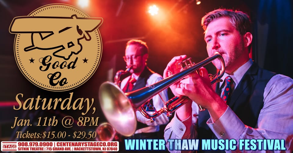 Centenary Stage Company’s Winter Thaw Music Festival melts away the blues featuring their first concert performance by Good Co. January 11. Other shows include Judy Carmichael, TAKE3: Where Rock Meets Bach, and Gangstagrass. All Winter Thaw Music Festival performances will take place in the Sitnik Theatre of the Lackland Performing Arts Center located on the campus of Centenary University