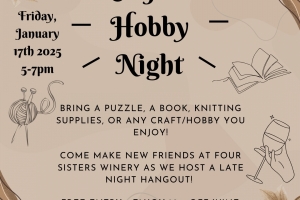 Four Sisters Winery invites everyone to an evening of creativity and fun working on your favorite crafts and hobbies.