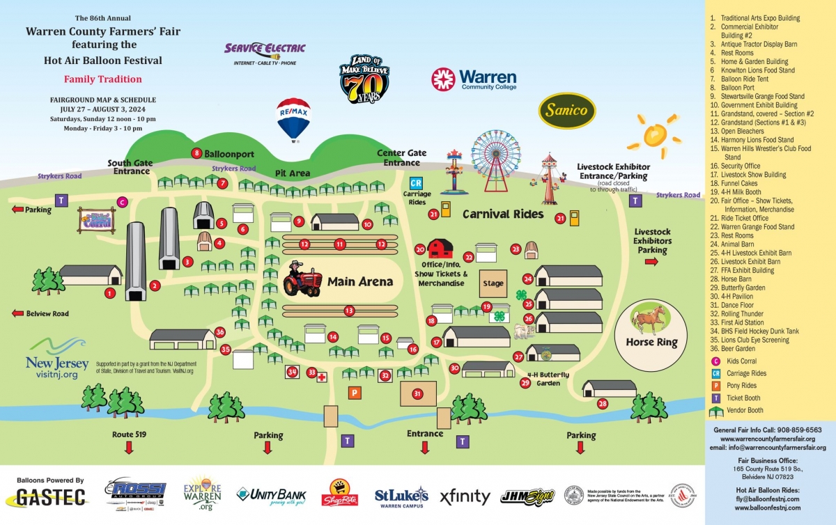 Celebrating its 85th year of providing affordable family fun, the Farmers' Fair includes the 22nd Hot Air Balloon Festival and the return of the Traditional Arts Expo. Where else can you thrill to a hot air balloon ride, eat cotton candy on a carnival midway, watch traditional craftsmen at work, take in a Demolition Derby, and cheer your neighbor on in a tractor pull all in the same place? Yes, the Farmers' Fair, featuring one of New Jerseys' popular Hot Air Balloon Festivals, is truly a family affair. Enjoy the mass balloon launches each evening. Visit the Kids Corral, where all shows and activities are free of charge for fairgoers. Enjoy the Antique Stock/ Lightweight Tractor Pulls, for free, in the Main arena. The Fair has some great, free, musical entertainment lined up throughout the week, too. This year, the Beer Garden features three local brewing companies - Czig Meister, Buttzville and Invertase! And don't forget to come to the "Warren County and You" building behind the main grandstand, where you can pick up tourism information from Explore Warren, and learn about other county government departments and agencies, too.