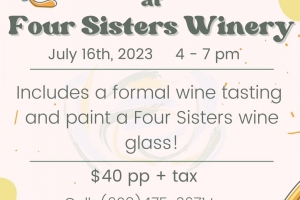 Let your creativity run wild at Four Sisters Paint and Sip. Enjoy a formal wine tasting while painting a wine glass.