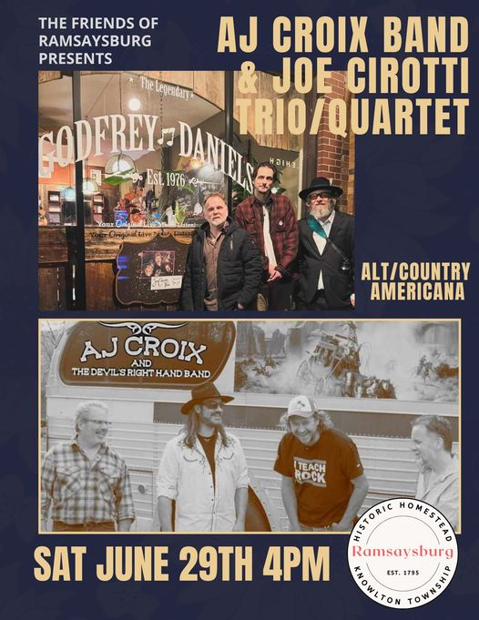 Get ready for Ramsaysburg Summer Concert Series - the first of the series features the roots of American folk, jazz, country, and bluegrass with Joe Cirotti Trio and the storytelling lyrics and soulful, edgy melodies of AJ Croix.