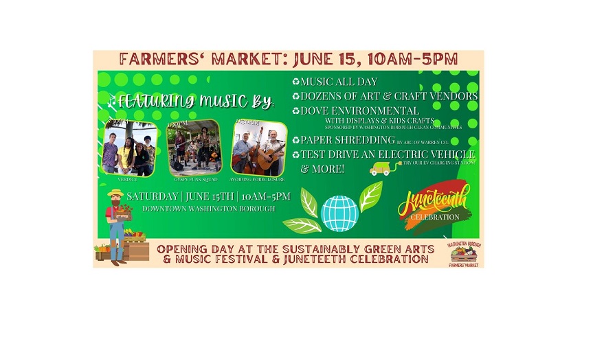 Washington BID celebrates sustainability and healthy living options. Attendees can enjoy live music and activities for children while parents can browse for renewable product options offering green living solutions and art and craft vendors. Held concurrently with opening day of the Borough's Farmers' Market. Free admission and held rain or shine!