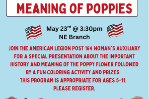 American Legion Post 164 Woman's Auxiliary will be giving a special presentation about the important history and meaning of the Poppy flower followed by a fun coloring activity!