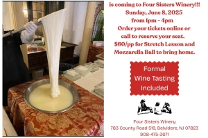 Join Scott for a fun-filled afternoon of mozzarella-making and wine tasting! You'll learn the art of crafting fresh mozzarella balls to take home, all while enjoying a wine tasting featuring Four Sisters' finest selections.