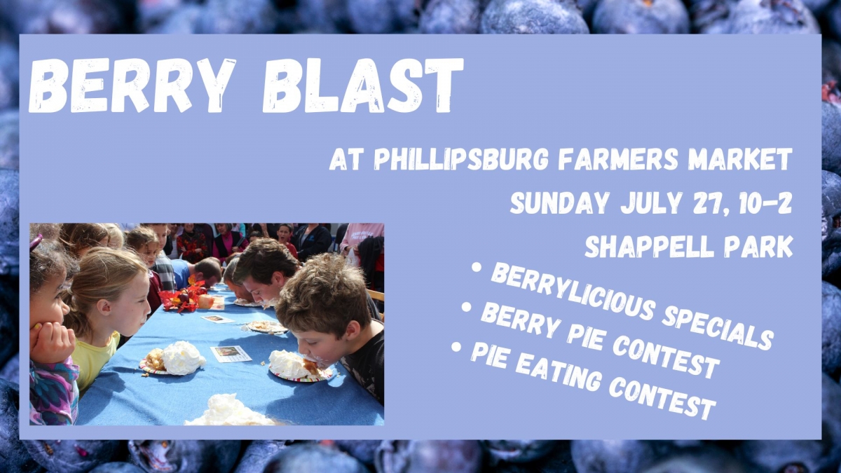 Phillipsburg's Open Air Market, open every Sunday through October, showcases farms, crafters, baked goods and artisans vendors, along with live music and food. July 27 features berry-themed food and activities! Berry pie baking contest, pie eating contest, berry smoothies and more!