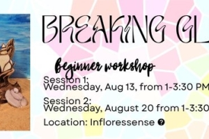 Breaking Glass Art Studio at Infloressense. This summer, create your own beach-inspired stained glass seashell! A condensed two-day beginner workshop will introduce you to the fine art of Tiffany-style stained glass.