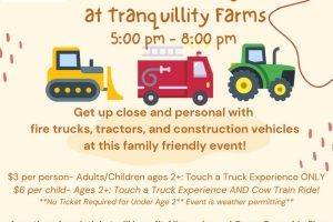 Kids and adults can enjoy an evening of trucks and other machinery for a sensory experience. Tickets are $3 person for Touch a Truck experience; $6 for Touch a Truck and Cow Train ride.