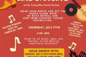 Grab your boots and hit the dance floor with DJ Dave Rupell and Jess of Country Fusion Instructing! Great for all levels, ages, and families - no line dancing experience necessary! $12/person ages 10+ (children younger than 10 are free).