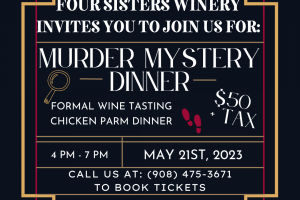 SOLD OUT OCTOBER 22 This thrillingly epic event, Murder Mystery Dinner at Four Sisters Winery, will be one that you won't want to miss! This is an interactive dinner that begs the question can you identify the perpetrator?