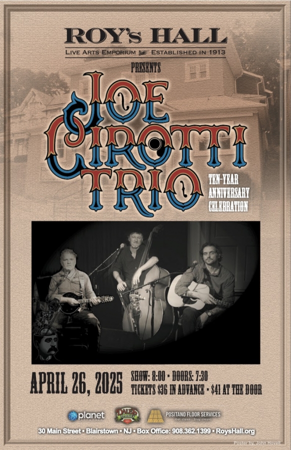 Get ready to celebrate 10 years with The Joe Cirotti Trio live at Roy's Hall. This Northwest Jersey Appalachian band will be playing full-band renditions of Joe Cirotti's remarkable catalog of original songs from his three full-length record releases.