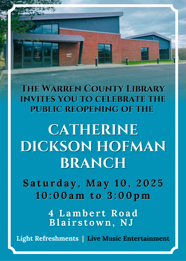 For our local library lovers, we are pleased to announce the Grand Reopening of the Catherine Dickson Hofman branch (Blairstown) in a couple of weeks. With live music, refreshments and materials ready for checkout, it's sure to be a great day!