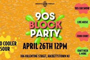 The party will be held at the brewery and in the lower lot with a block party style set up for serving beers, food, music with live DJ, 90s car show and more. Vendors will be on site for the party as well.