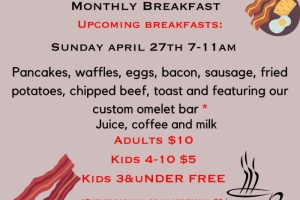 Monthly breakfast, all you can eat! Omelet bar additional $3.