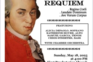 The Water Gap Singers invites the audience to a pleasing Wolfgang Amadeus Mozart afternoon, a program that includes his "Ave Verum Corpus", “Regina Coeli” (K.276), and the "Laudate Dominum” movement from the Solemn Vespers, plus his Requiem in D minor.