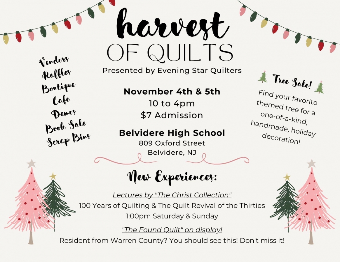 Come out to Belvidere High School to view quilt displays, view vendors, participate in workshops, enter a raffle, shop the boutique, see quilts for sale, enjoy a cafe, and featured speakers featuring 100 years of quilting from 1830-1930.
