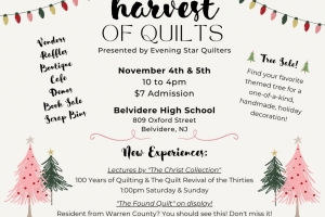 Evening Star Quilters’ Guild of Belvidere, New Jersey presents “Quilts in the Vineyards,” amazing quilts made by local artists will be available to view while you enjoy your wine tasting and personal charcuterie boards.