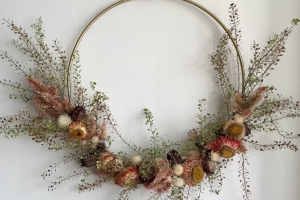 Design your own dried floral wreath using locally grown flowers and foliage using eco-friendly floral practices. Wreaths are 12in diameter and florals will be arranged on half of the wreath.