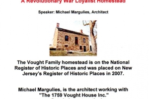 Architect Michael Margulies presents on this homestead, which is recognized on the National Register of Historic Places and has been placed on the New Jersey's Register of Historic Places in 2007. Mr. Margulies runs "The Vought House Inc.," a nonprofit helping to restore the house.