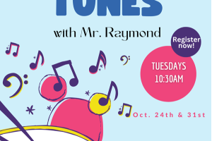 Mr. Raymond is back with his guitar and silly songs. Come sing along and explore music through instruments and colorful props. For toddlers and preschoolers. Please register all children attending.