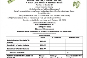 Taking place at Belvidere Manor comes a fundraiser for Common Sense for Animals. An admission of $25 gets you 3 sheets of Level 1, 2 sheets of Level 2, 1 sheet of Level 3 and a door prize ticket.