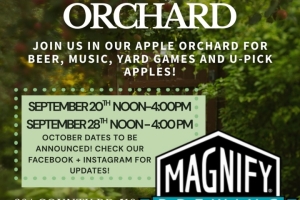 Mackey's Orchard presents a weekend in the beer garden, featuring Magnify Brewing. Live music, apple picking, food truck and yard games will also be available. Must be 21+ to enter.