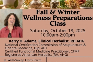 A hands-on class to prepare some of clinical herbalist Kerry Adams’ favorite recipes for fall and winter support.