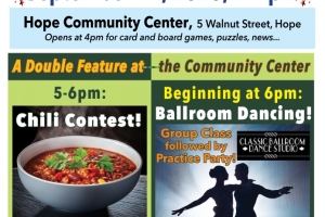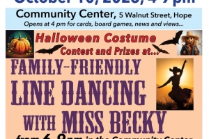 The Hope Creative Team encourages you spend the evening in the village shopping, supporting local eateries, playing games, and socializing! This month features a costume contest with prizes at Miss Becky's line dancing. The Community Center will have cards, board games, news and more.