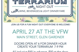 Support The Youth Center in Glen Gardner and have a fun night out! Come make a terrarium and have a night out with wine, beverages and light dinner fare. Doors open at 6pm for dinner and create your terrarium from 7pm-9pm.