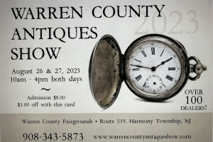Held at the scenic and convenient Warren County Fairgrounds on Route 519 in Harmony Township, NJ, the Warren County Antiques Show & Vintage Marketplace offers a weekend in the country shopping for the best in antiques.
