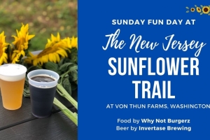 Another Sunday Fun Day at the New Jersey Sunflower Trail at Von Thun Farms! Why Not Burgerz will be serving up delicious sandwiches and paninis (10am-5pm) and Invertase Brewing Company will be pouring their craft beer (12-5pm).