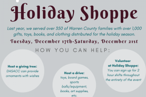 The Domestic Abuse and Sexual Assault Crisis Center (DASACC) of Warren County is seeking donations of new toys and games for its sixth annual Holiday Shoppe, which provides free holiday gifts to all Warren County residents in need.