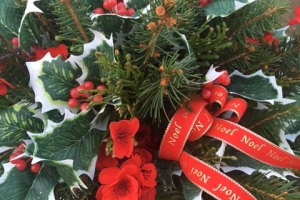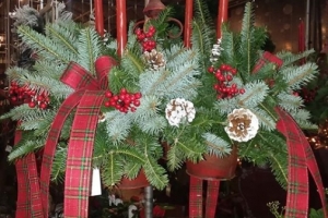 Using holly and various types of fresh greens, create a delightful centerpiece for your holiday table. We will add pine cones and berries then finish with a candle and decorative bow. The approximate size is 14″. Bring gloves and clippers. Reservation are required. $39.00