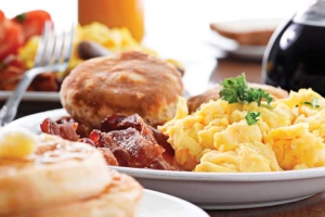 Farm-to-table, locally-sourced seasonal menu with breakfast and lunch entrees, including stuffed French toast, citrus cured smoked salmon, shrimp cocktail, an omelet station and a carving station.