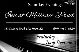 Live music at the historic inn, a restored 1769 stone gristmill, features pianist Tony Bartone in the upstairs dining room on Saturday evenings.