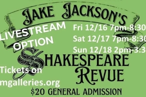 Jake Jackson's one-man show features 25 selected monologues and soliloquys performed in succession from the best of William Shakespeare's canon. There's also a livestream option for all three shows.