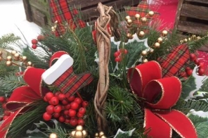 Create a lasting festive tree for your holiday table using fresh boxwood, holly, and assorted winter greens. You will then decorate with pine cones, ribbon and other novelties. Completed height approximately 18″. One of our most popular evergreen pieces. Bring clippers.