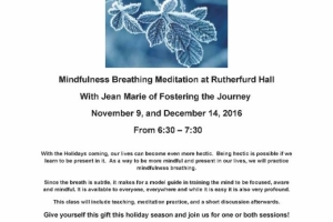Mindful Breathing and Meditation at Rutherfurd Hall with Jean Marie of Fostering the Journey. Register for December 14 session.