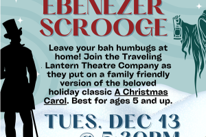 Enjoy a live performance by the Traveling Lantern Company of 'A Christmas Carol" depicting Ebenezer Scrooge, a nasty, mean, snarling old geezer with no care for anything other than his money.