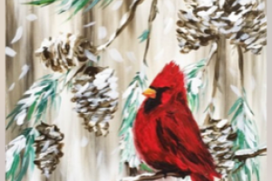 Calling aspiring artists and wine lovers! Let's get cozy and creative while we paint this Winter Cardinal. You will be guided by a professional artist while you learn about color mixing, drawing & perspective while getting a little art therapy!
