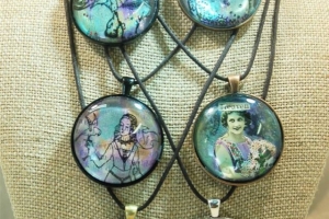 This is a make and take workshop to help beat the winter blues! Participants will create their own unique art glass collage pendant using rubber stamps, pigment inks, and paper ephemera.