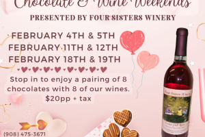 For a romantic atmosphere, soft music, chocolate, wine and valentine’s decor, looking no further than Four Sisters Wine and Chocolate event. Treat your special someone with a decadent array of chocolate and a tasting of up to 8 wines.