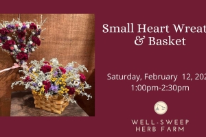 Decorate a 5" grapevine heart wreath with dried flowers for the Valentines holiday, then fill a 4"x6" basket with dried flowers and your choice of colors.