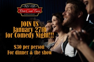 Come to the Rock Creek tavern for Comedy Night dinner and a show! Tickets are $30 per person for dinner and the comedy show. Tickets are selling fast so purchase them now. Call 908-777-3777.