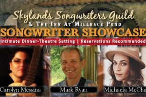 Start the New Year off right with a little music at The Inn! An evening of performances by three talented Skylands Songwriters Guild members, Carolyn Messina, Mark Ryan, and Michaela McClain.