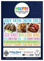 Hackettstown celebrates its diverse and exciting dining options with the 5th Annual Restaurant Week “Passport to HKTWN” from July 14-30, giving locals and visitors alike a great way to experience Hackettstown restaurants they love and those not yet visited. Diners simply visit participating establishments during the event to enjoy prix fixe lunches and/or dinners, and other specials, and get their passport stamped. Each stamp collected is an additional ticket entry into the Restaurant Weeks raffle drawing, with chances to win lots of prizes including $50 BID Bucks. Passports are available the Hackettstown BID office and at participating restaurants. Find details on Restaurant Weeks and the participating eateries on the Hackettstown BID website here.