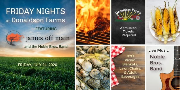 Friday Nights at Donaldson Farms featuring James Off Main got off to a great start last week! This week's musical guest is is The Noble Bros. Band, a local favorite and Hackettstown hometown boys. Relax and enjoy delicious food and live music outdoors while surrounded by the stunning views of growing crop fields and mountain vistas. Bring your own adult beverages if you wish. Tickets are required to enter the event whether or not you plan to purchase food; all food is sold separately.